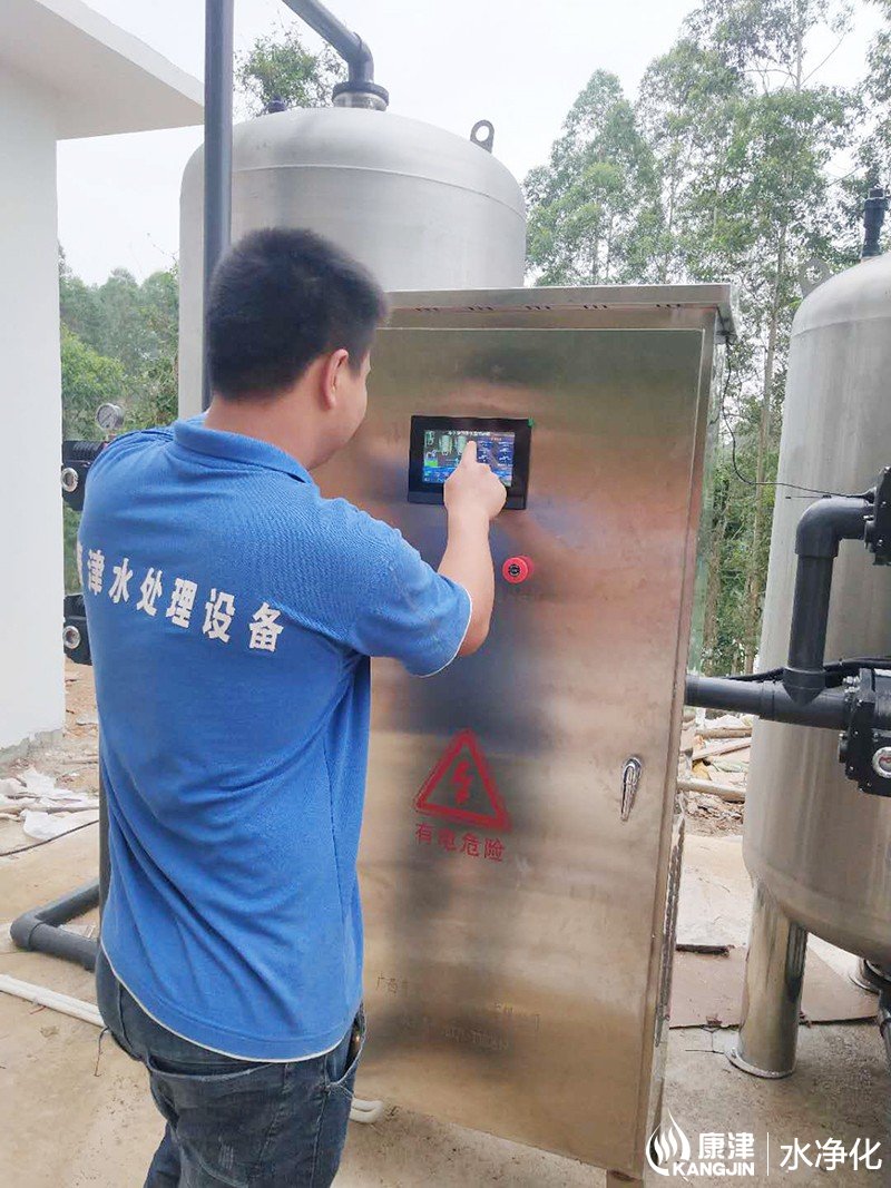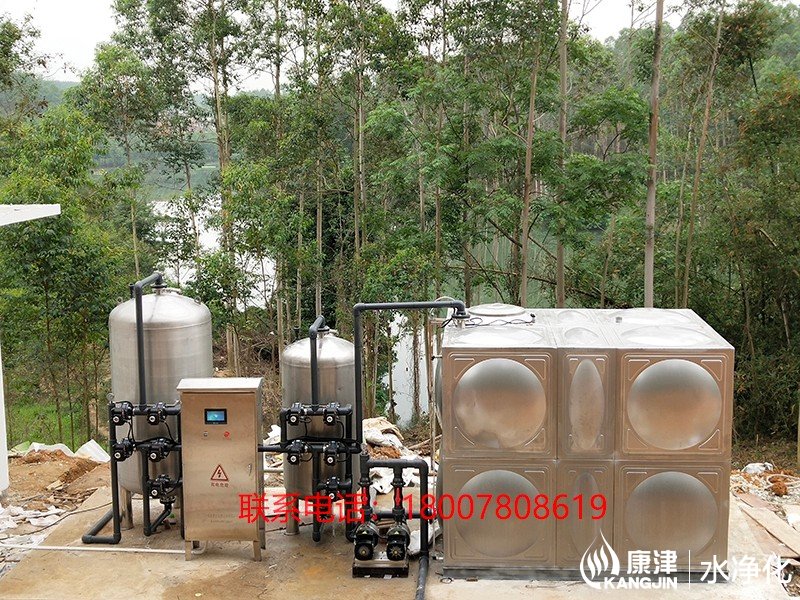 工藝流程:河水-石英砂過濾器-凈水箱-二氧化氯消毒-加壓泵-高位水塔