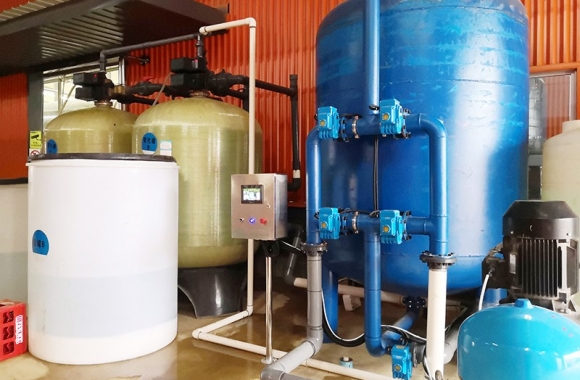 工藝流程:井水-原水箱-錳砂過濾器-石英砂過濾器-活性炭過濾器-軟化水-凈水箱