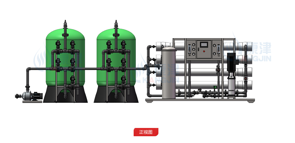 為保證關鍵設備,如:單反滲透裝置的長期可靠穩定運行,設置預處理系統,滿足反滲透膜(RO)進水指標:濁度<0.5NTU、SDI<4、余氯<0.1ppm。根據原水水質,預處理系統由原水水箱、原水泵、多介質過濾器、活性炭過濾器、軟化過濾器、保安過濾及相關輔助設備組成。