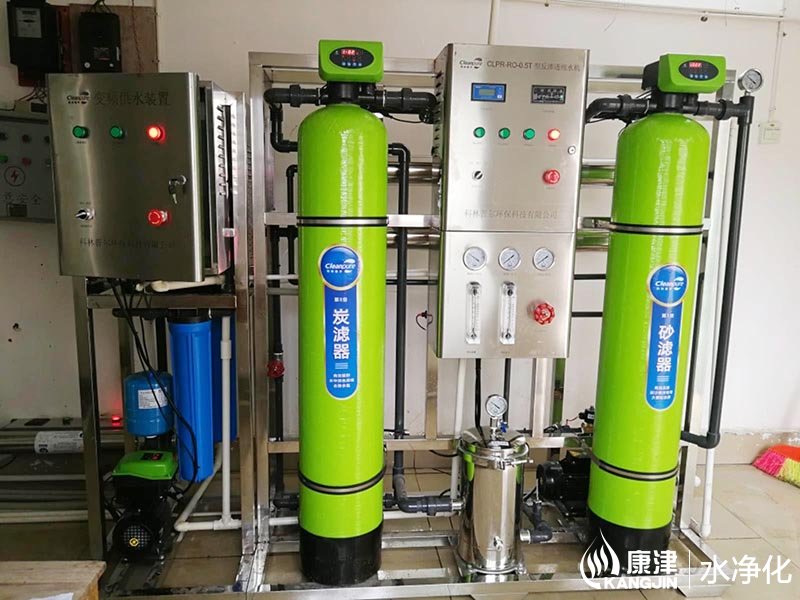 項目名稱:來賓鳳凰中心校學生直飲水設備工程 設備名稱:0.5T反滲透純水設備 工藝流程:原水箱-原水泵-石英砂過濾器-活性炭過濾器-保安過濾器-變頻供水...