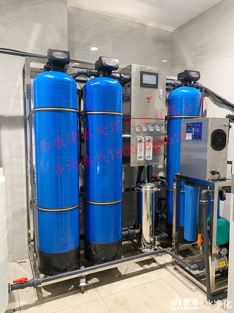 項目名稱:貴港東暉醫院口腔科1噸反滲透純化水設備 設備名稱:1噸反滲透純化水設備 工藝流程:原水箱-原水泵-石英砂過濾器-活性炭過濾器-樹脂過濾器-精密過濾器-反滲透設備-軟水鹽-凈水箱-變頻供水回水殺菌系統-用水點...