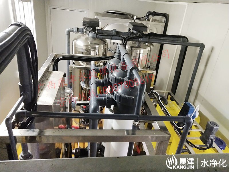 工藝流程:井水-原水箱-原水泵-石英砂過濾器-活性炭過濾器-精密過濾器-加藥-超濾設備-二氧化氯消毒-凈水箱
