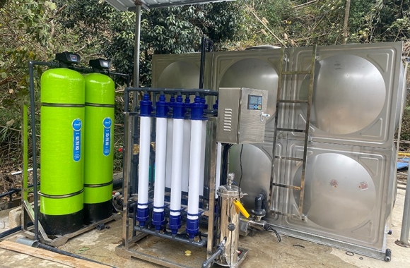 項目名稱:海南某景區鼓鳴寨4噸生活用水設備 設備名稱:4噸超濾凈水設備 工藝流程:自來水-原水箱-石英砂過濾器-活性炭過濾器-精密過濾器-超濾設備-紫外線消毒器-變頻供水-各用水點...