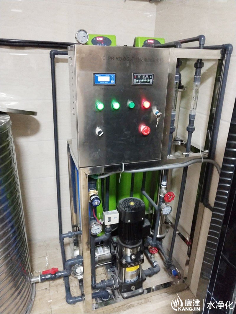 工藝流程:石英砂過濾器-活性炭過濾器-精密過濾器-加藥-高壓泵-反滲透膜組-無菌水箱-變頻恒壓供水系統