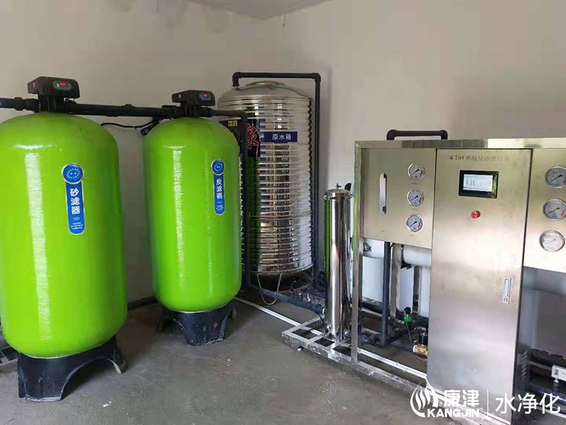 工藝流程:原水箱-石英砂過濾器-活性炭過濾器-保安過濾器-反滲透-凈水箱