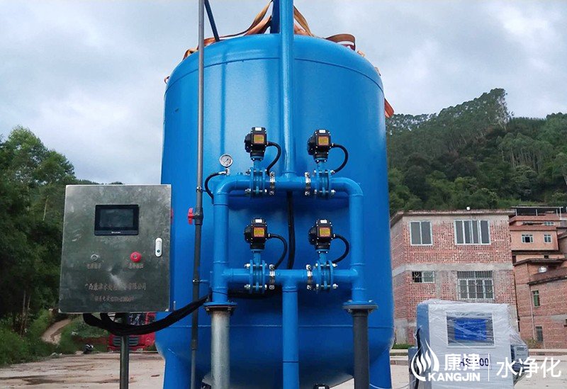 設備是壓力式的,其原理是當原水自上而下通過濾料時,水中懸浮物由于吸附和機械阻流作用被濾層表面截留下來;當水流進濾層中間時,由于濾料層中的砂粒排列的更緊密,使水中微粒有更多的機會與砂粒碰撞,于是水中凝絮物、懸浮物和砂粒表面相互粘附,水中雜質截留在濾料層中,從而得到澄清的水質。經過濾后的出水懸浮物可在3毫克/升以下。