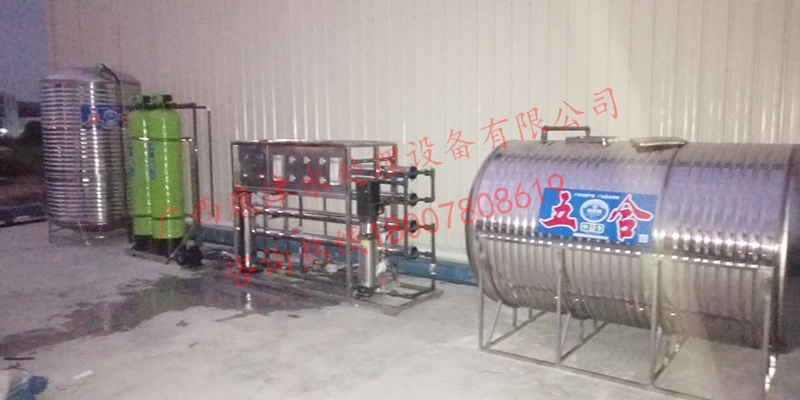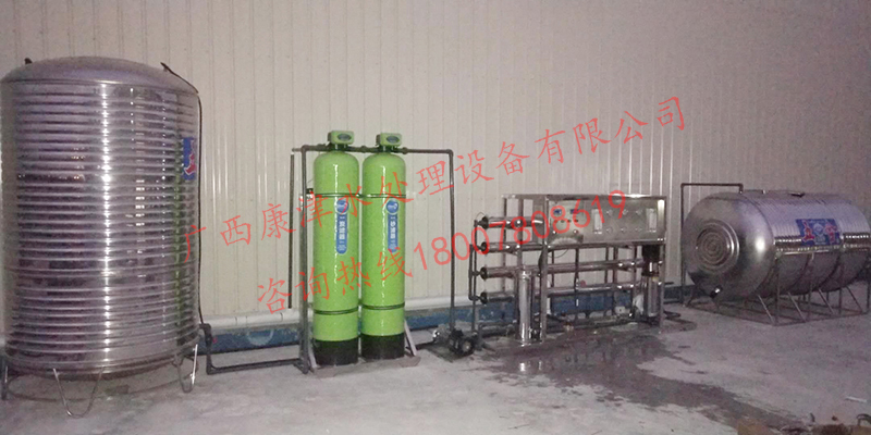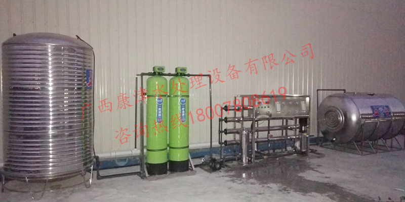 工藝流程:原水箱-原水泵-石英砂過濾器-活性炭過濾器-精密過濾器-反滲透設備-水池