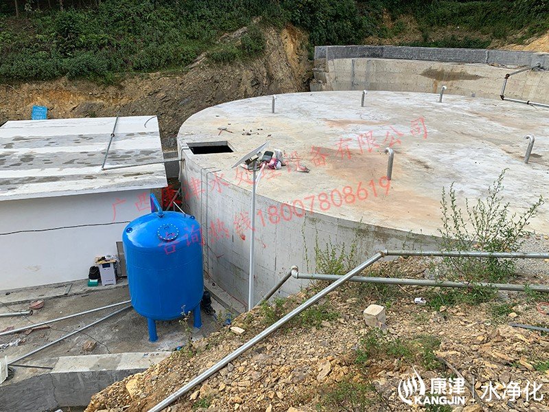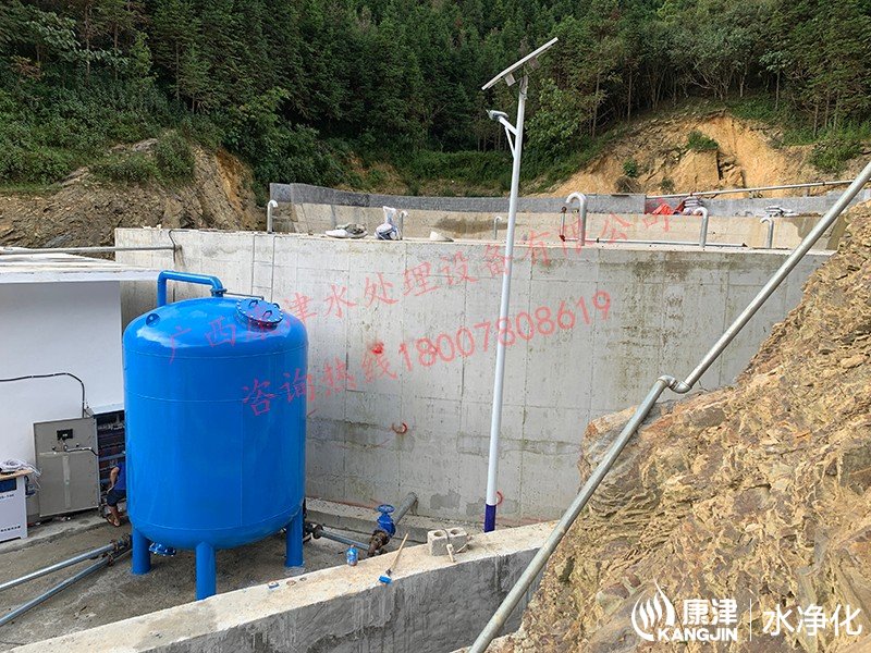 工藝流程:山泉水-二氧化氯加藥器-絮凝投加器-石英砂過濾器-用水點