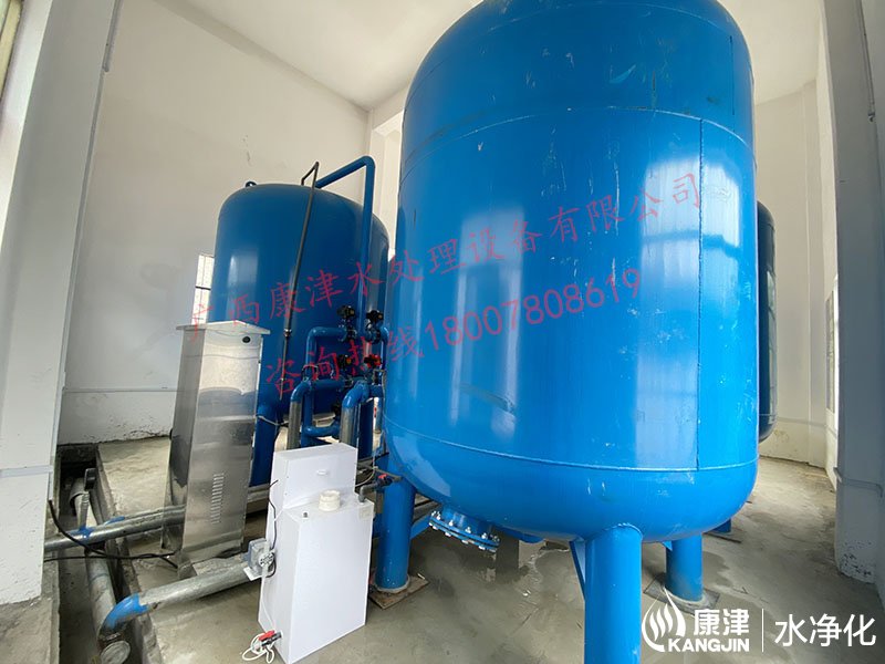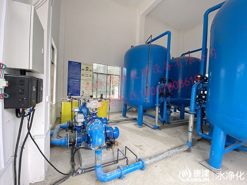 工藝流程:河水-原水箱-絮凝加藥-石英砂過濾器(二級過濾)-二氧化氯消毒-凈水箱